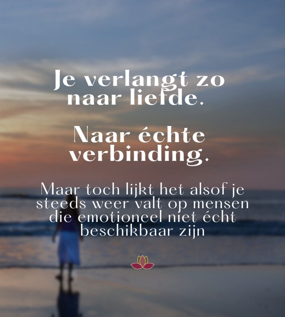 Maar toch lijkt het alsof je steeds weer valt op mensen die emotioneel niet écht beschikbaar zijn.