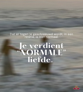 Dat er tegen je geschreeuwd wordt, in een relatie, is niet normaal. Bekritiseerd worden is niet normaal. Vernederd worden is niet normaal. Iemand die alles voor jou bepaald is niet normaal. Gemanipuleerd worden, is niet normaal. Wanneer misbruik/slecht behandeld worden bekend voor je is, omdat je, misschien van huis uit, niet anders gewend bent, zien